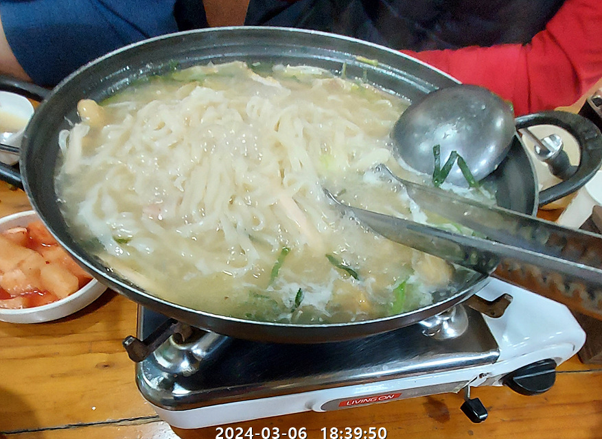 닭고기를 다 먹고 칼국수 면을 넣엇 먹어 본다