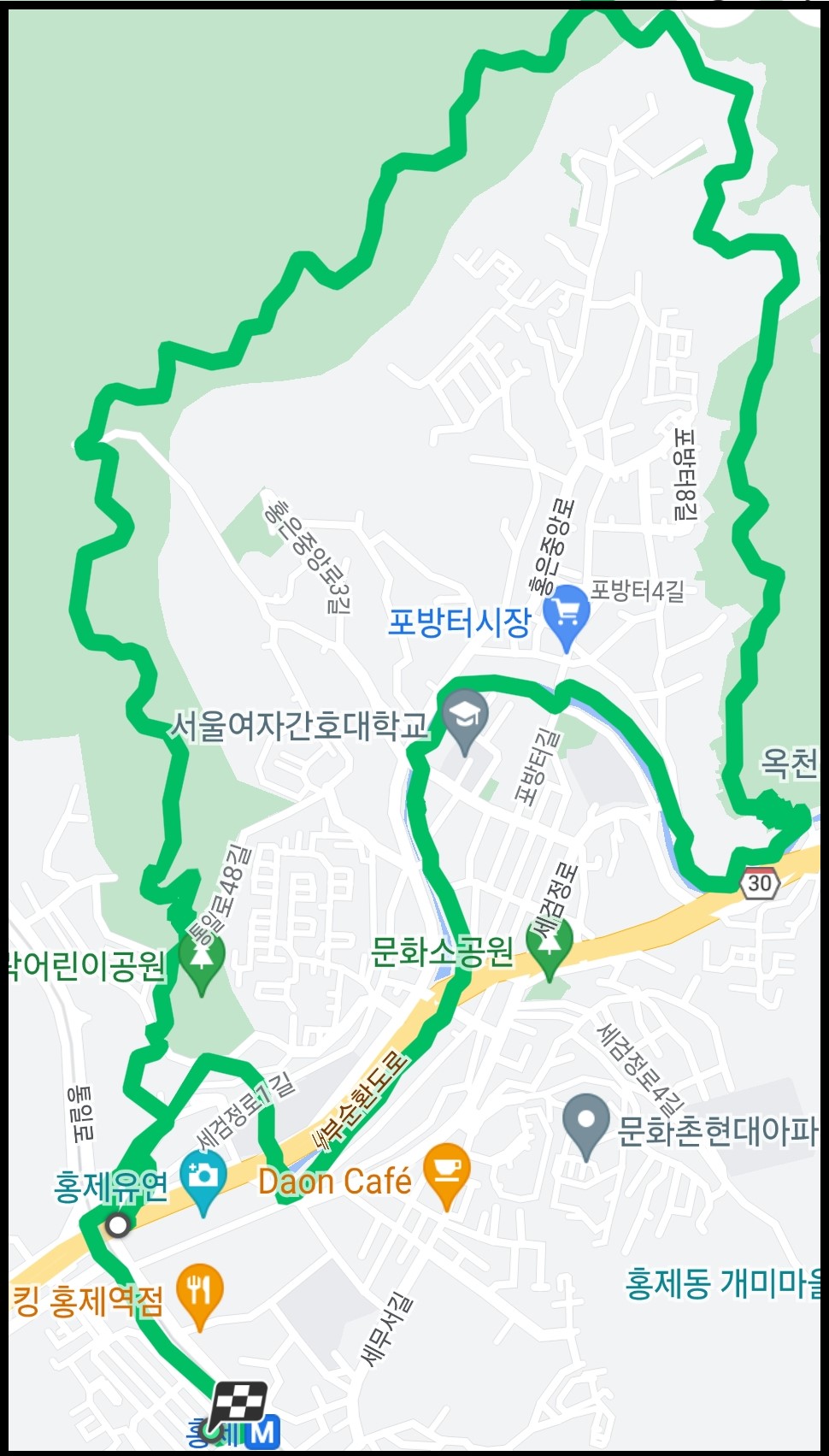 ㅇ 코스 : 홍제역 1번출 - 유진상가 - 홍제천 - 옥천암 - 북한산자락길 - 홍제역4번출 - 식당(약 6.5km)