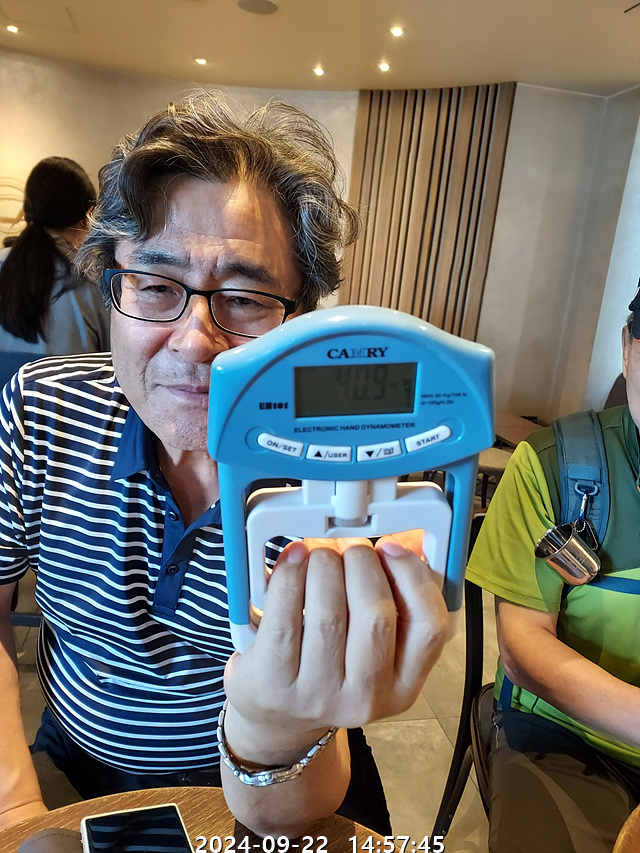 식사 후 커피shop에서 내가 가지고 간 악력기로 악력테스트를~~