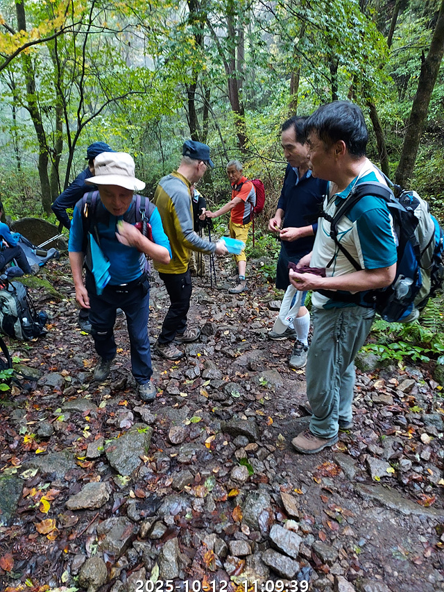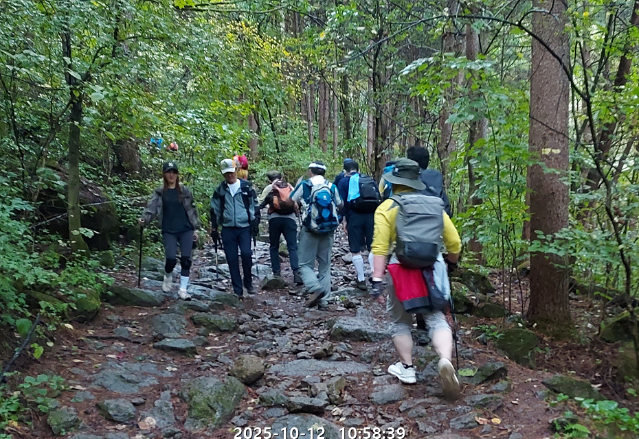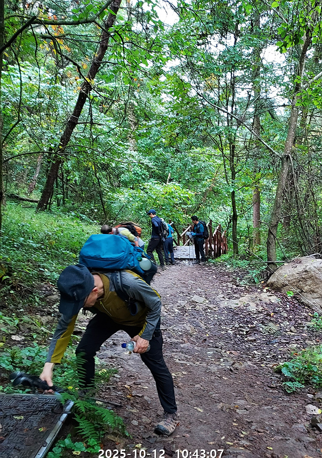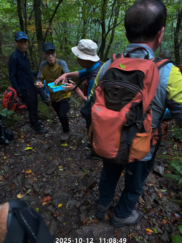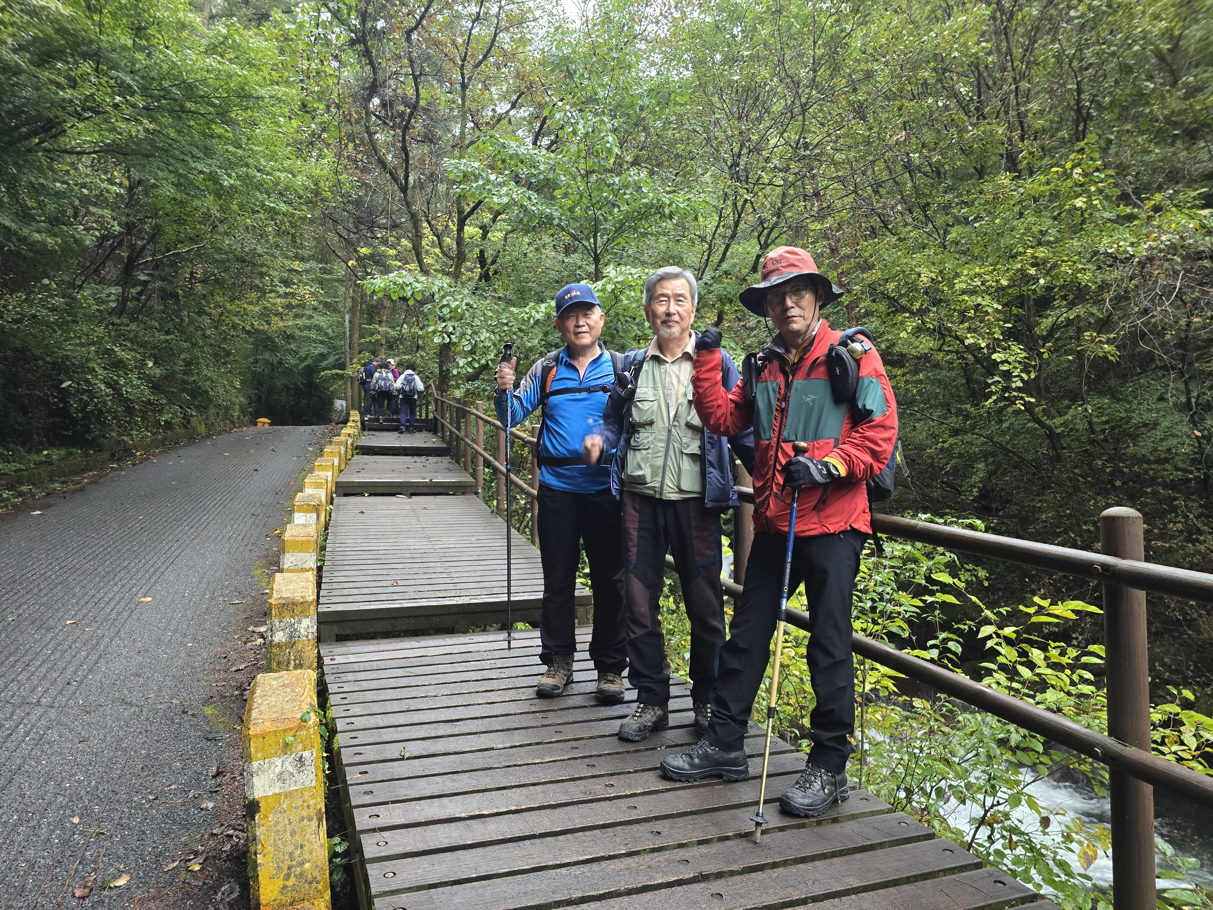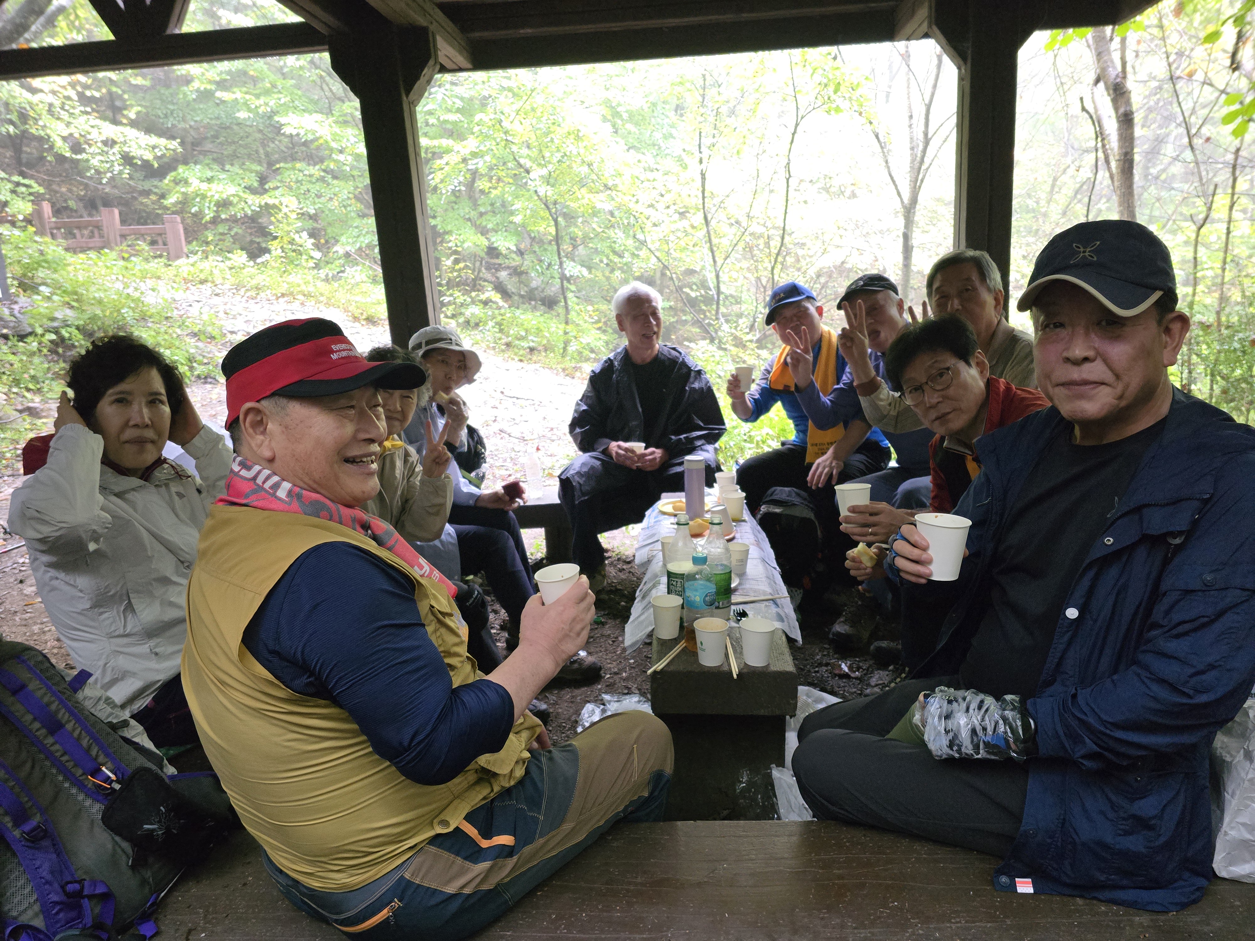 흐린 날씨 속에서도 웃음과 대화가 끊이지 않았고, 빗소리와 계곡물 소리가 어우러진 산행은 특별했다.