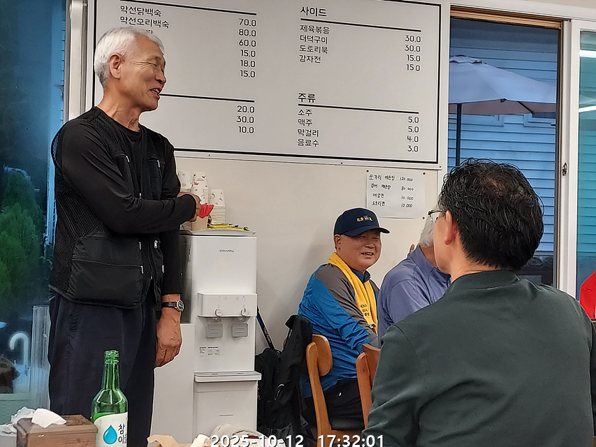 식사 자리에서는 정경영 산악회 회장님, 박승원 재경회장님, 백영준 차기 재경회장님(2026년),