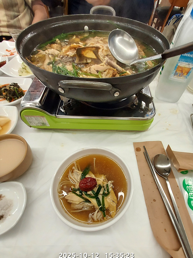 천동주차장에 도착하자마자 식당으로 향했다. 따끈한 닭백숙이 식탁 위에 올려져 있었다.