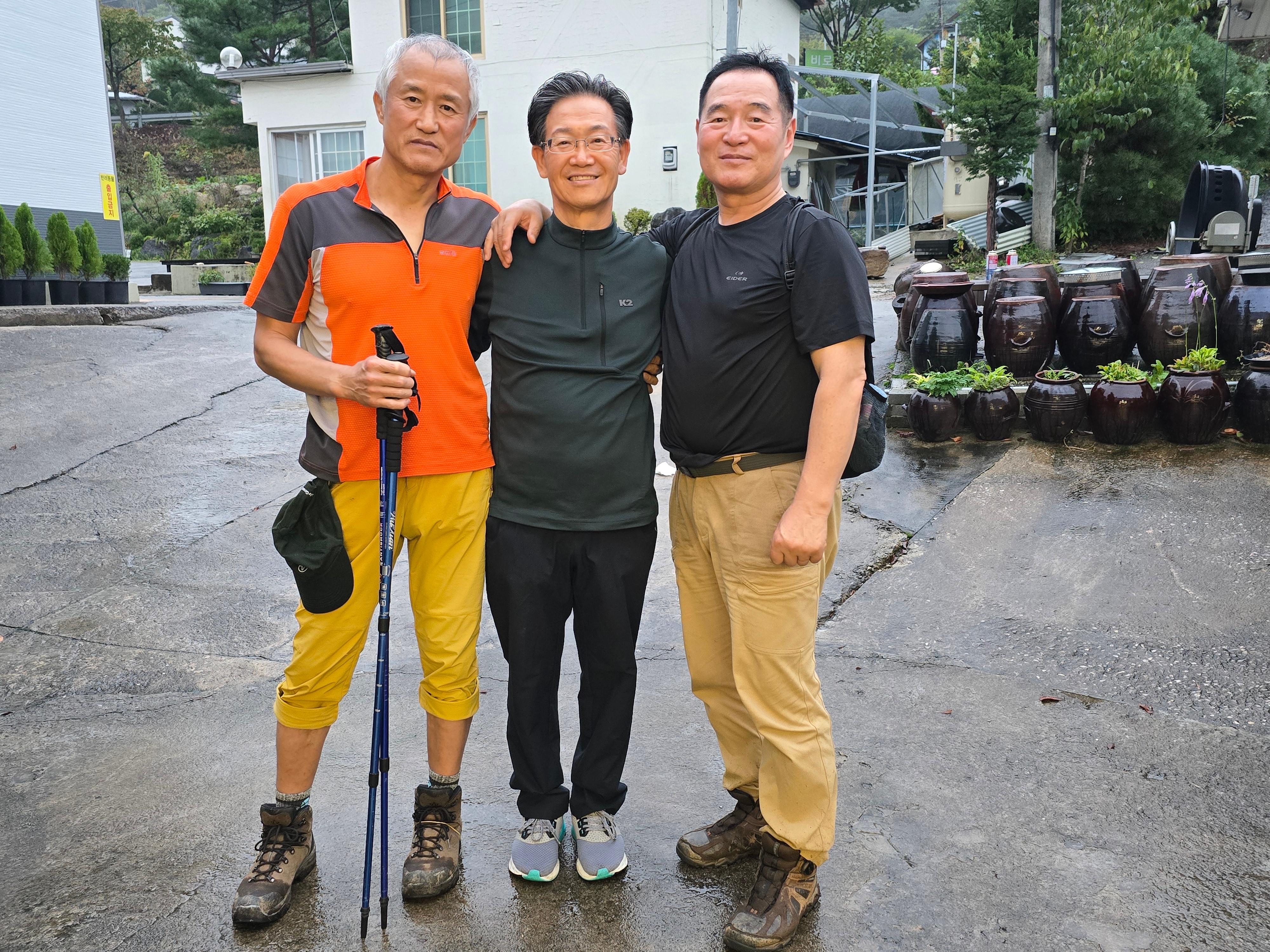 천동주차장에서 천동쉼터로 올라 가면서~~ 좌로부터 노철우(17회), 오규범선배님(15회), 정경영(19회)