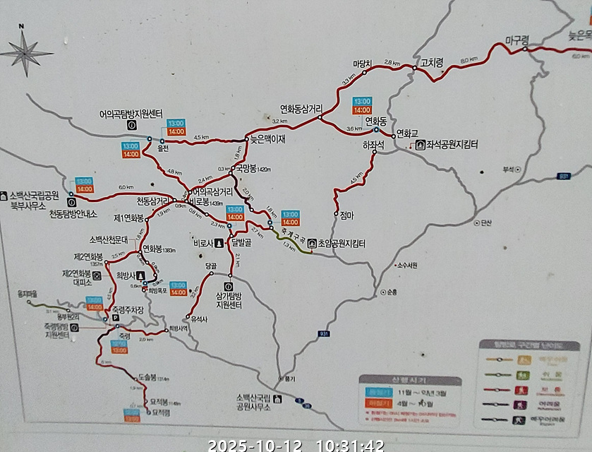 * A코스 : 어의곡주차장 - 소백산 비로봉 - 천동삼거리 - 천동쉼터 - 천동탐방지원센터 - 천동주차장 (약 11.8km)