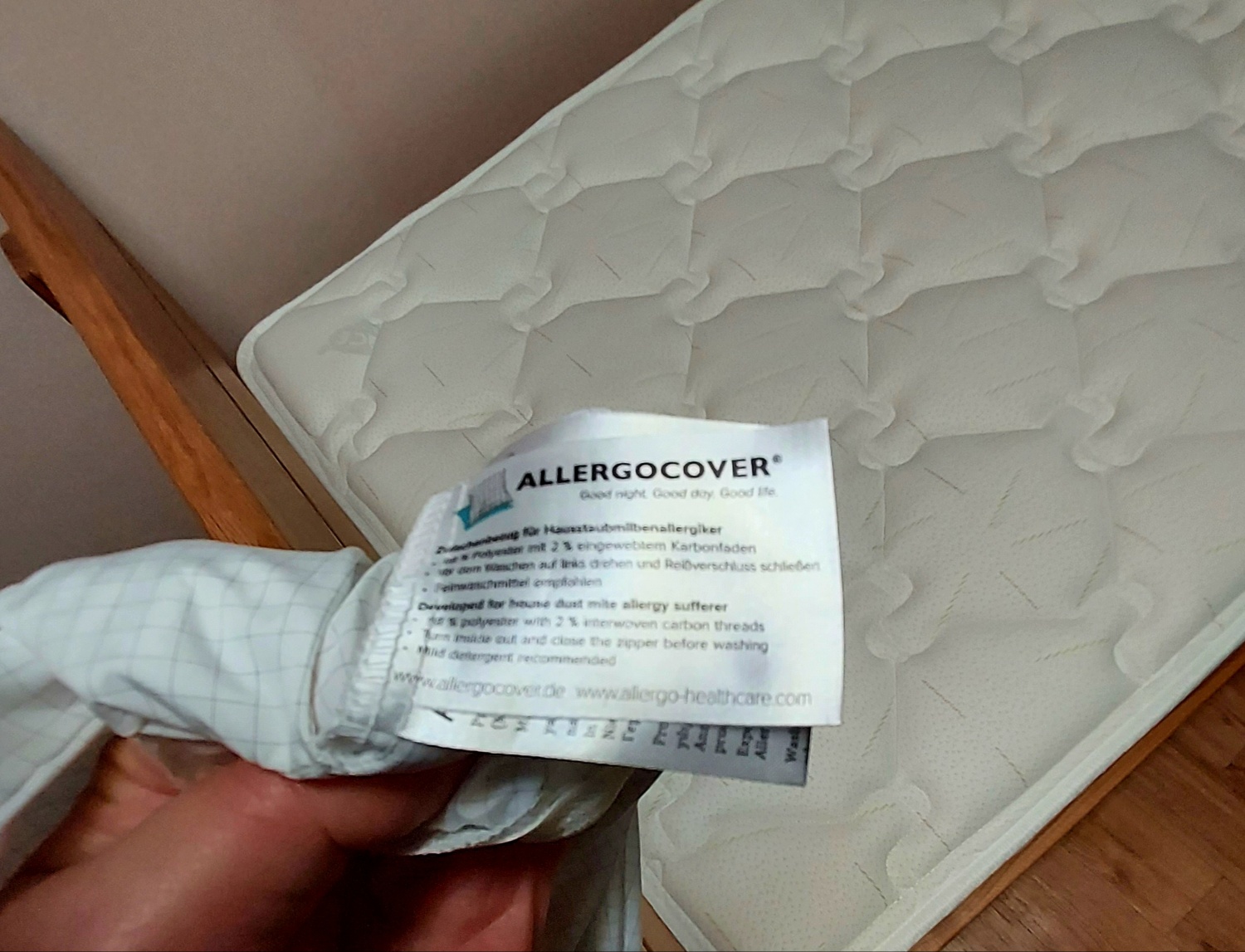 매트리스에 알레가드 진드기 방지용 특수커버를 씌우기 위해서