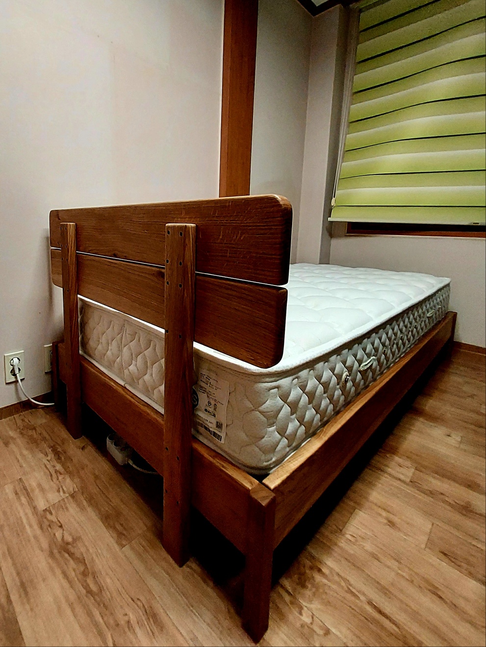 "이승석 우드워커스"에서 구입한 국산 참나무 원목으로 만든 침대 프레임(헤드형 포함)과 ACE 매트리스