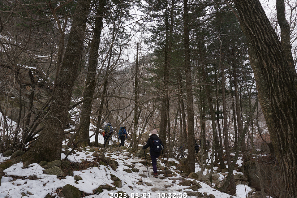 * 흘림골 일부 구간은 눈이 있어서 아이젠을 착용해야 할 구간이 일부 있었다.