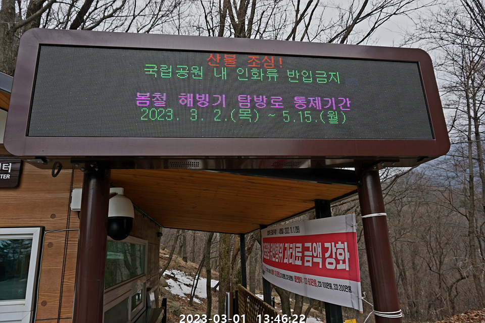 탐방로 통제기간이 표시되어 있다.