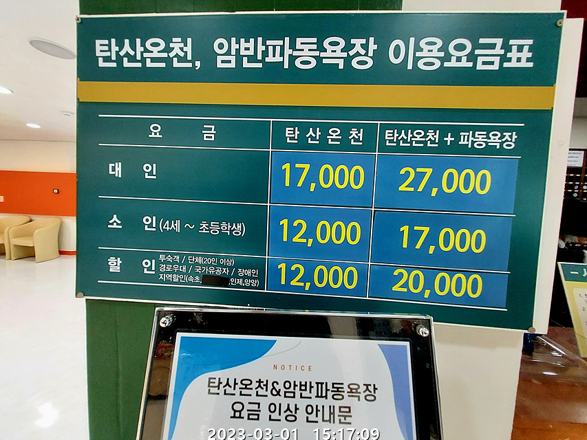 경로우대로 12,000원이다. 마침 탈의실에 큰 캐비넷을 할당해 주셔서 배낭을 넣을 수 있었다.