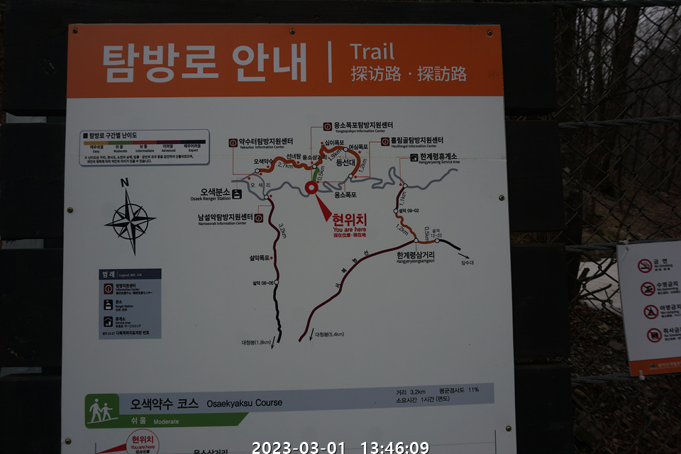 * 오색탐방지원센터 및 오색주차장 부근 : 화장실, 식당있슴, 오색그린야드 호텔 대중 목욕탕 있슴