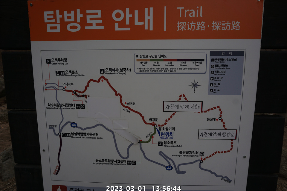 그리고 현 위치에서 용소탐방지원센터-약수탐방지원센터까지는 주전골인데 예약없이 갈 수 있는 코스이다