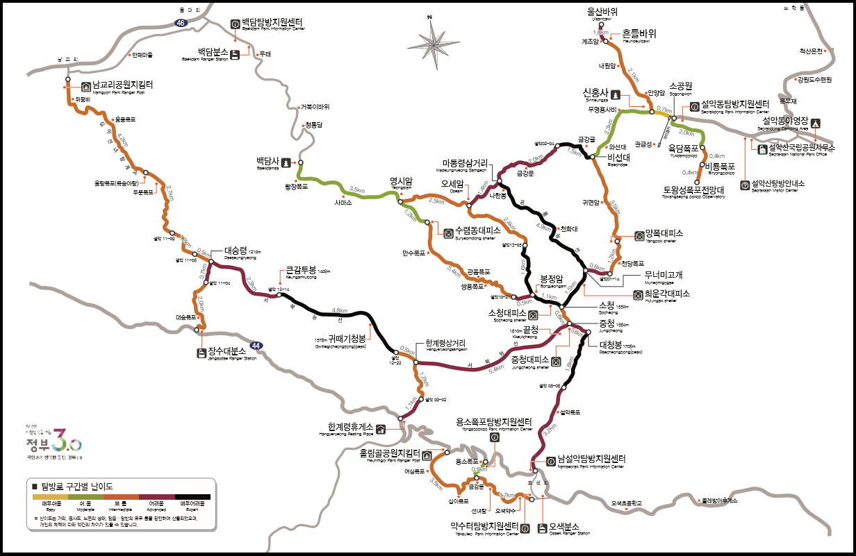* 한계령(오색) - 대청봉 - 오색(한계령) : 14km / 8시간 30분