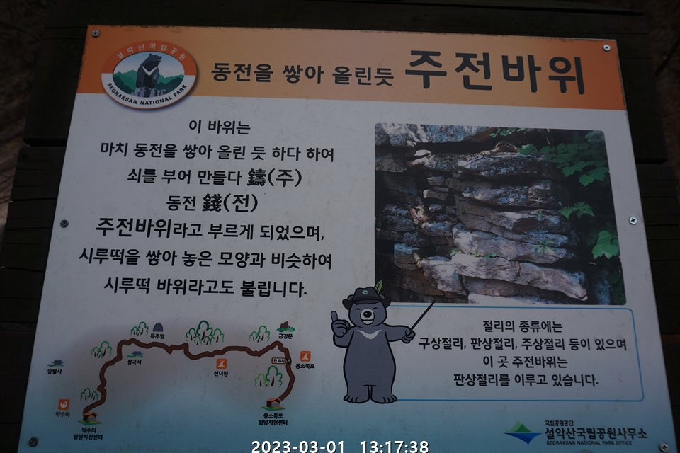 이번주 3.4(토)은 경남 산청군에 있는 왕산과 필봉산을 산행할 예정이여서 오늘 3.1(수)은 가볍게 설악산에 있는