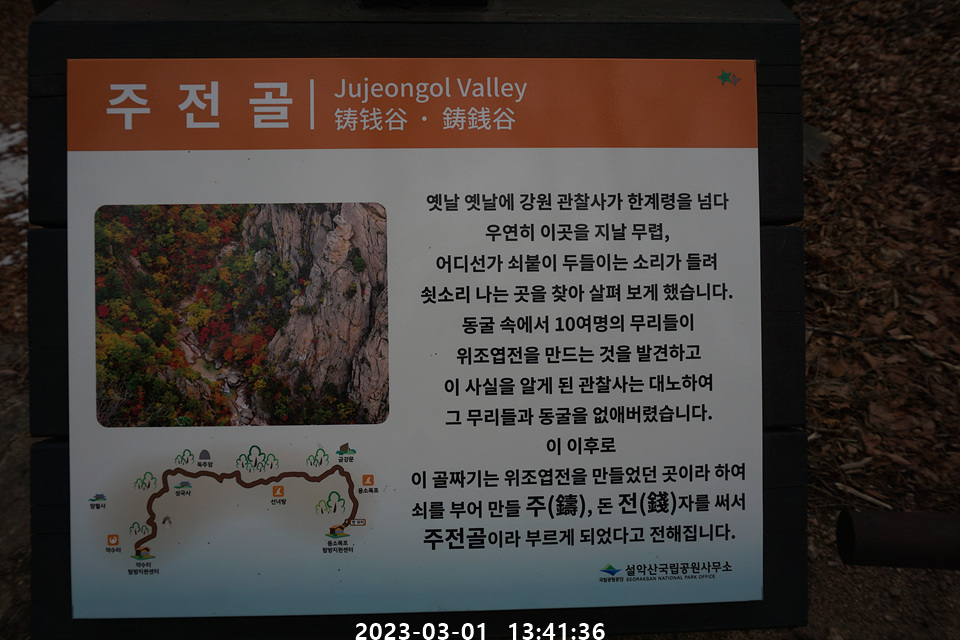 코스는 흘림골-용소삼거리-용소폭포-용소탐방지원센터-용소삼거리-주전골-오색 주차장까지 이고
