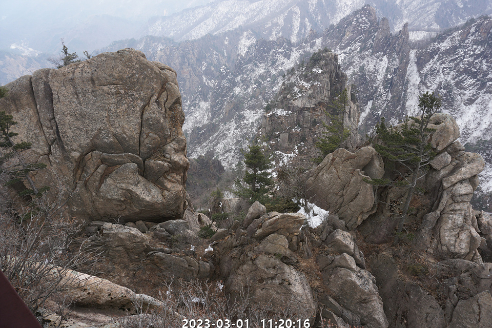 강원도 설악산에는 아직 산에 눈이 쌓여있었다
