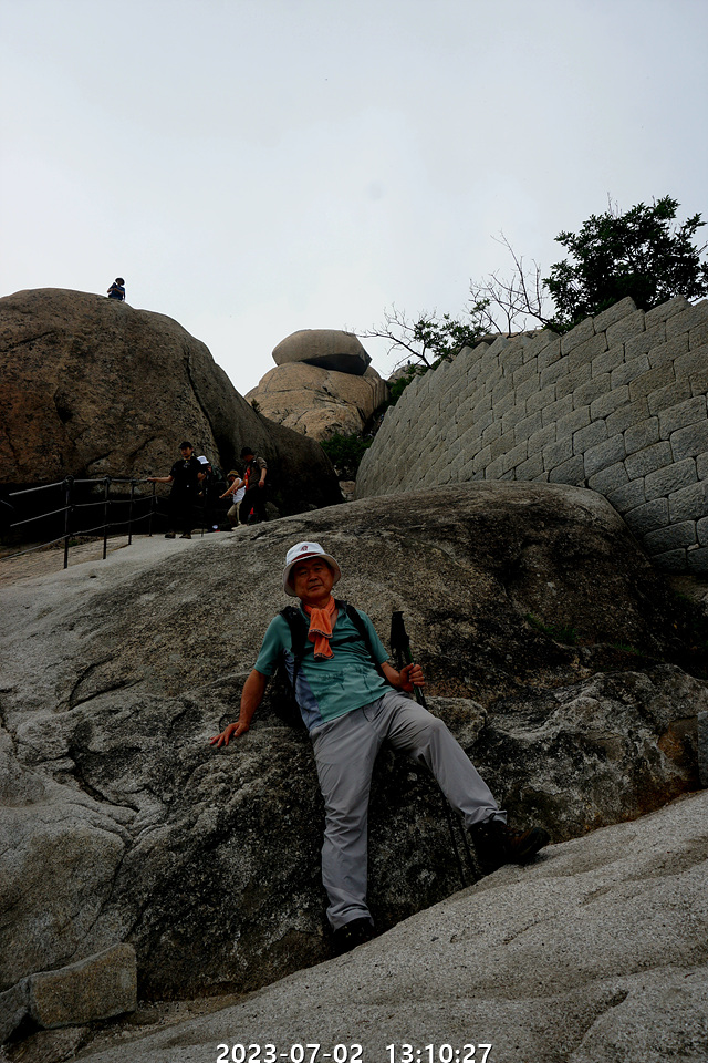 열심히 올라오시는 노교수님~~ 뒤에 만경대가 보인다.