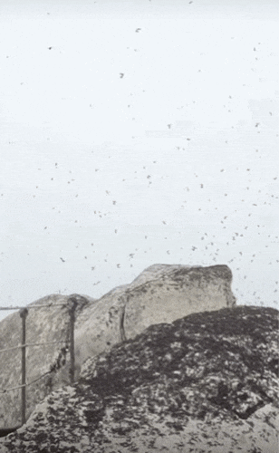 러브버그 떼가 바위 한 면을 새까맣게 뒤덮고 있어 등산객들이 앉거나 기대서 쉴 공간이 없을 정도다.